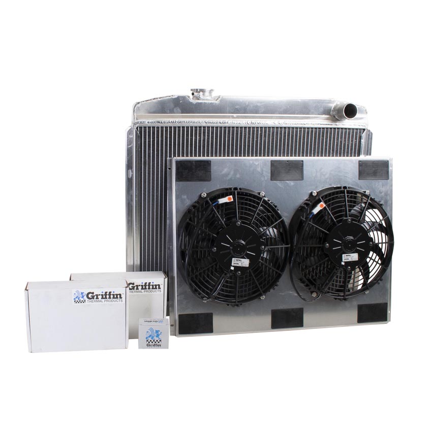 A "one stop shop" for all of your cooling needs. We have paired this radiator with a high performance electric fan and a hand formed aluminum fan shroud. This ensures optimal airflow across the entire core surface area.