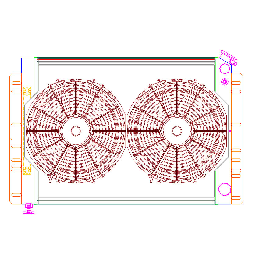 A "one stop shop" for all of your cooling needs. We have paired this radiator with a high performance electric fan and a hand formed aluminum fan shroud. This ensures optimal airflow across the entire core surface area.
