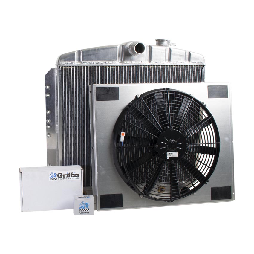 A "one stop shop" for all of your cooling needs. We have paired this radiator with a high performance electric fan and a hand formed aluminum fan shroud. This ensures optimal airflow across the entire core surface area.