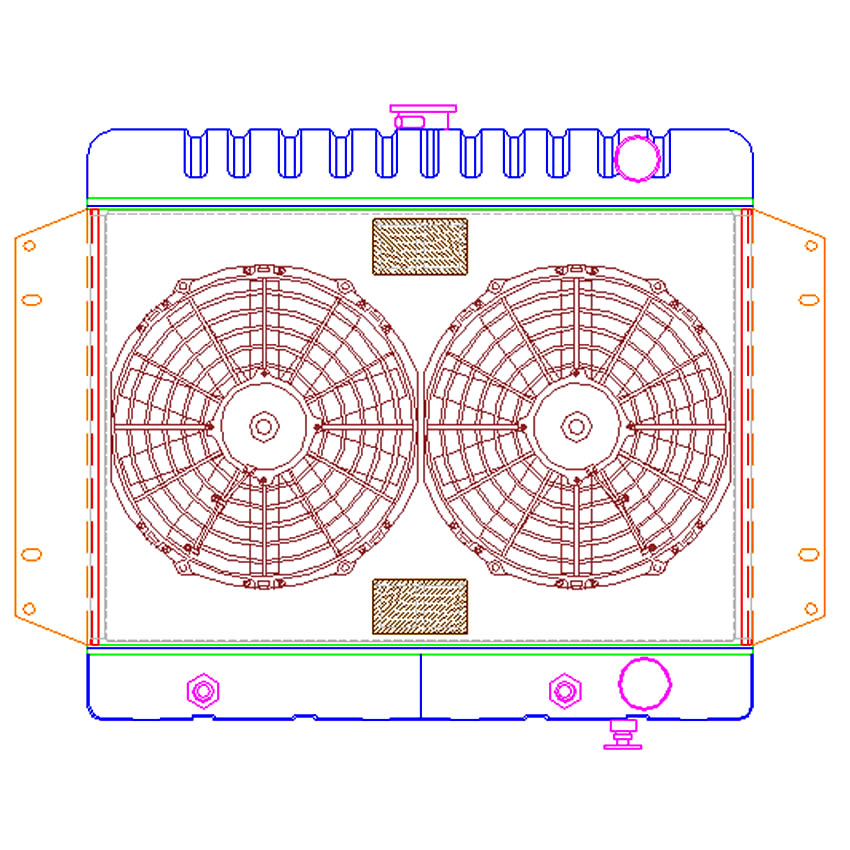 A "one stop shop" for all of your cooling needs. We have paired this radiator with a high performance electric fan and a hand formed aluminum fan shroud. This ensures optimal airflow across the entire core surface area.