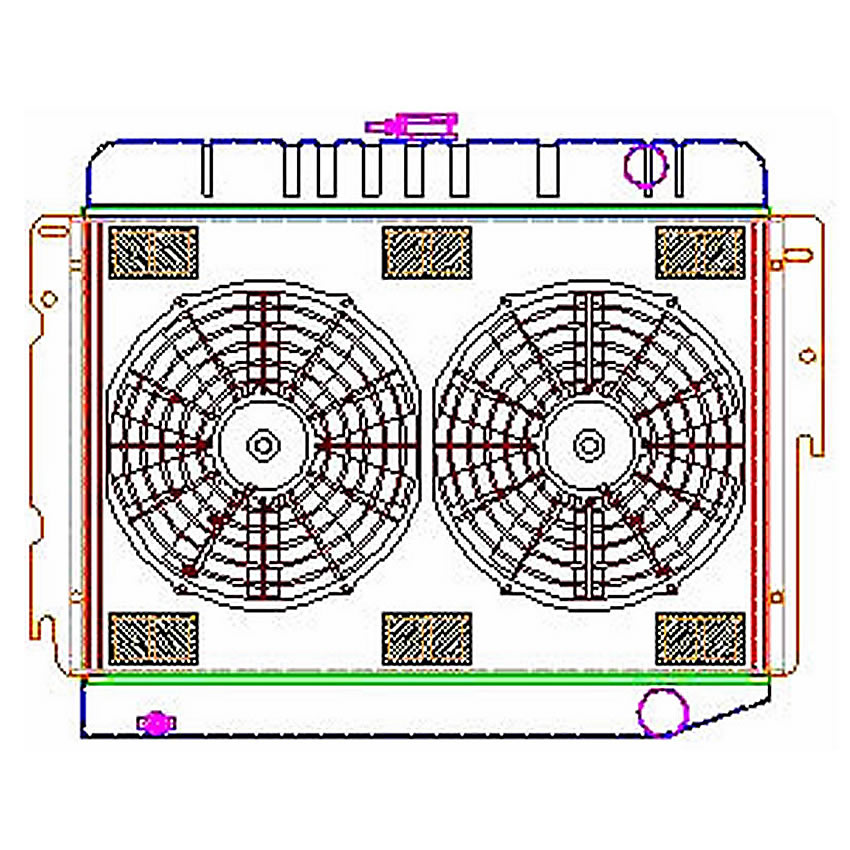 A "one stop shop" for all of your cooling needs. We have paired this radiator with a high performance electric fan and a hand formed aluminum fan shroud. This ensures optimal airflow across the entire core surface area.