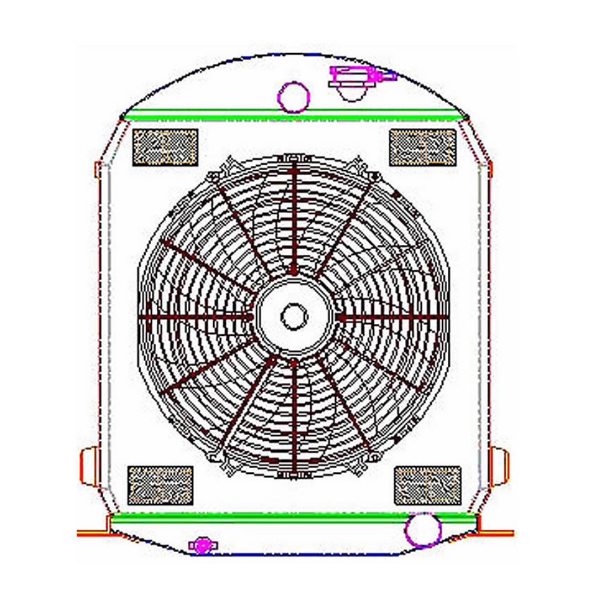 Description: 1928 - 1929 Ford Model A, Outlets Top Center Bottom Passenger, No Options Manual Transmission - ExactFit - ComboUnit, Includes: Shroud, Fan(s), Wiring, Temp Sensor, and Rad Cap