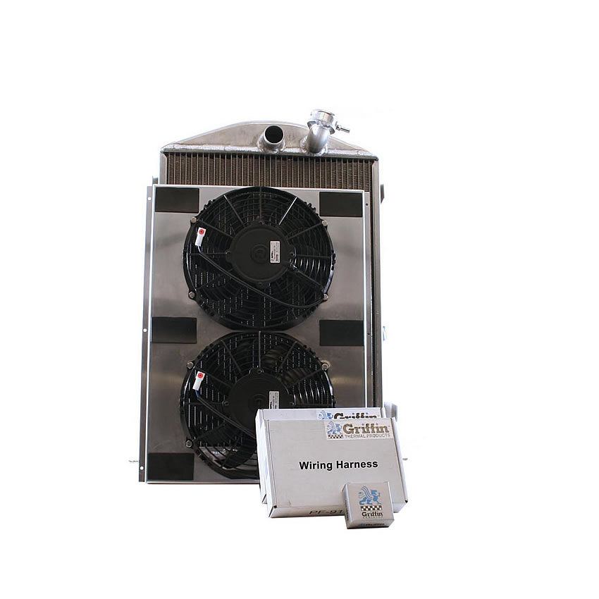 Description: 1932 Model B, Core 22 x 17.5, Outlets top center bottom passenger, Auto Transmission - ExactFit - ComboUnit, Includes: Shroud, Fan(s), Wiring, Temp Sensor, and Rad Cap