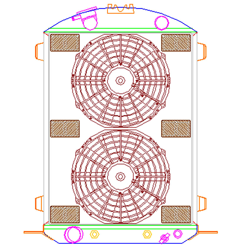 Description: 1932 Ford Model B, Ford Early Outlets, Hood Rod Brackets, Core 22 x 17.38, Outlets Top Center Bottom Passenger, Auto Transmission, PerformanceFit - ComboUnit, Includes: Shroud, Fan(s), Wiring, Temp Sensor, and Rad Cap